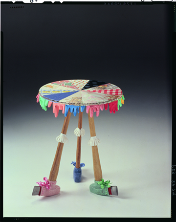 Piétement : haches émoussées sous layette laine et manche à gigot polyéthylène