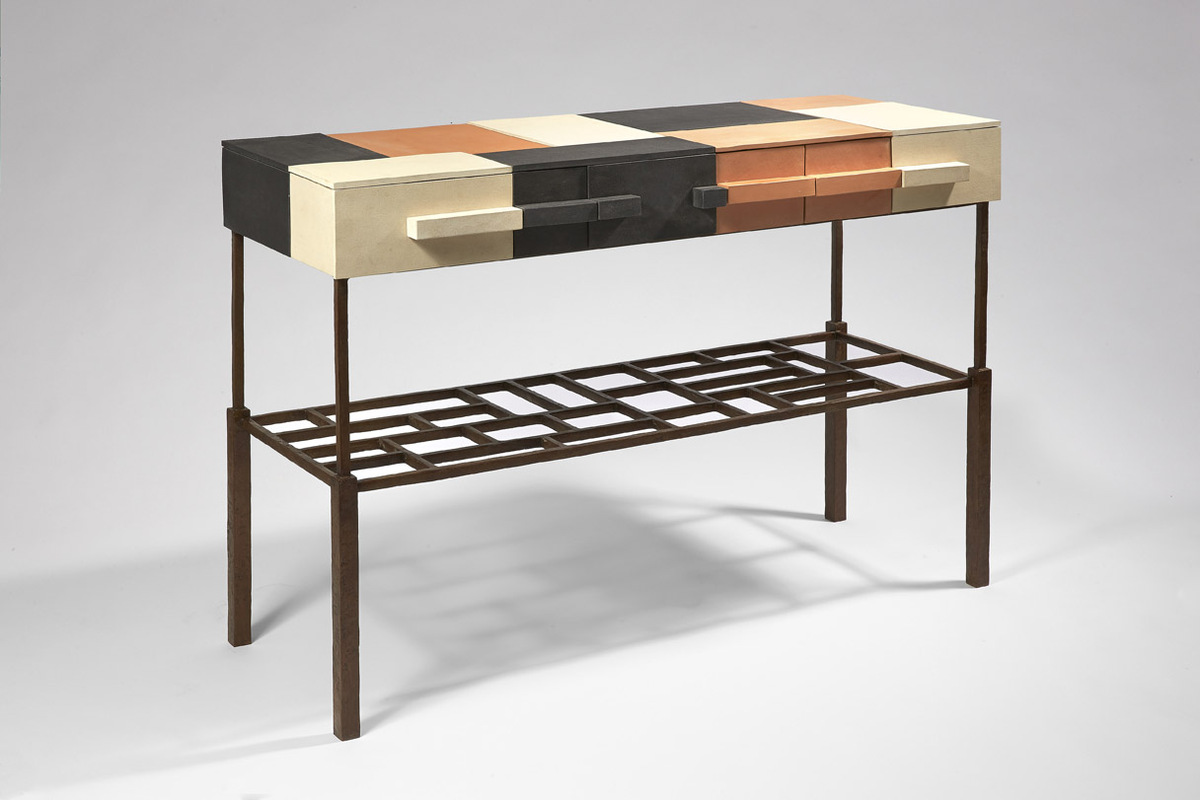Les matériaux tout d’abord : terre cuite, bronze et bois scarifiés qui avaient fait le succès de la collection « Pierres sèches ».